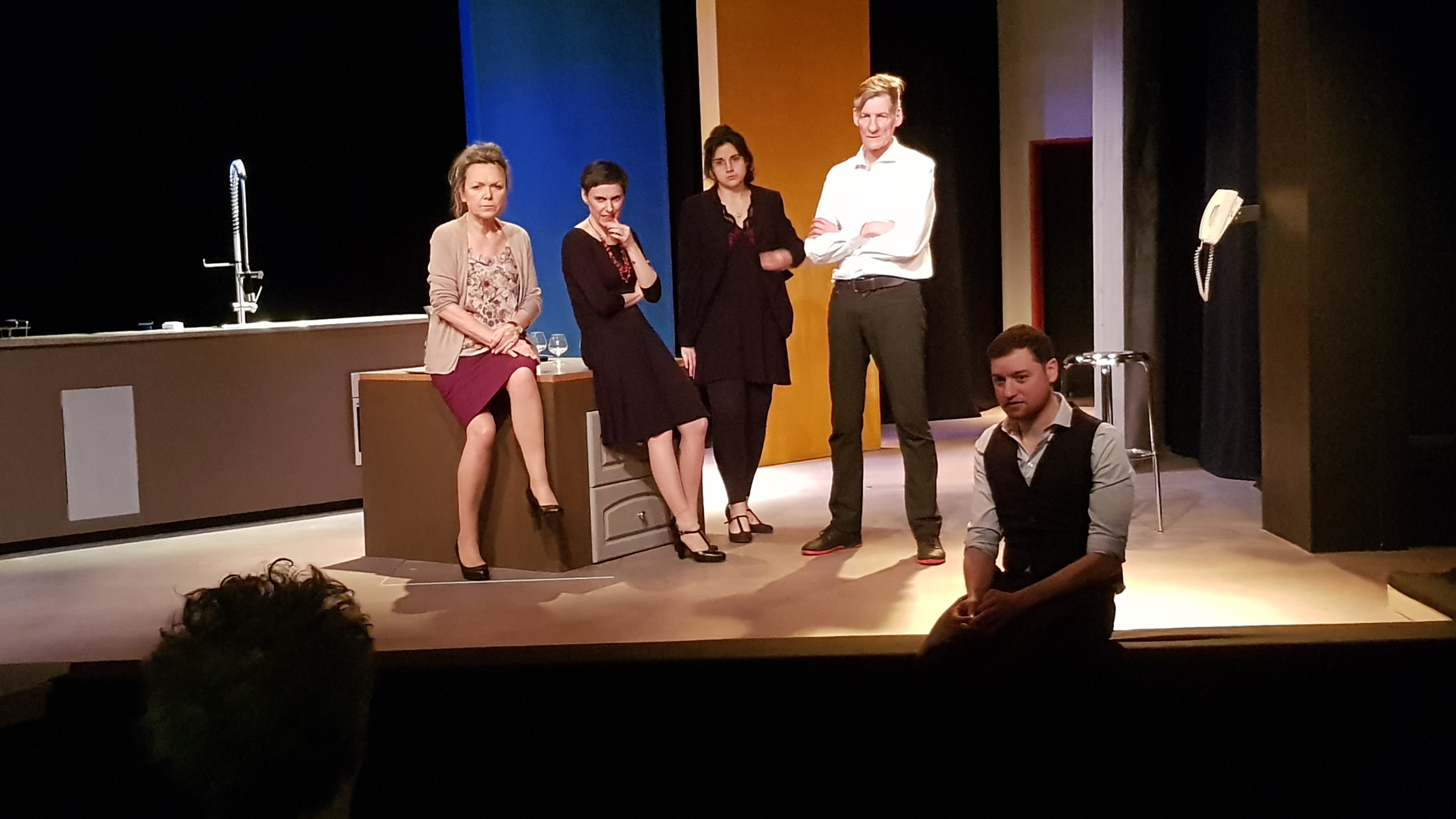 Pour l’histoire : Martine et Jacques, les hôtes de maison, reçoivent des invités de marque qui, tel l’Arlésienne et Godot se font attendre et n’apparaîtront jamais sur scène. Martine a mis une très belle robe et finira par fondre en larmes devant le spectacle de son dessert qui revient à la cuisine presque entier et qui provoque une profonde remise en question du sens de sa vie. Rajoutons un ami « pot de colle », un frère assez peu vertueux et adepte du poker. Le texte, tel un scalpel, découpe, cisèle et dévoile les caractères des personnages. C’est grinçant, parfois même un peu vache, mais toujours délicieux. Je me réjouis déjà de voir le produit fini !